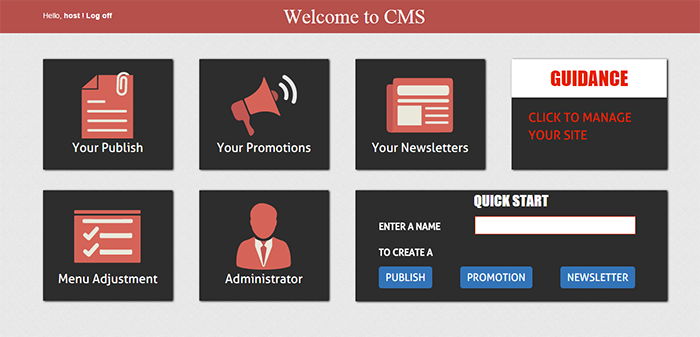 - 后臺管理方案:自定義內(nèi)容管理系統(tǒng),模板化,模塊化 加上所見即所得的界面,使后臺管理工作非常簡便,用戶只要選擇好模板,簡單的拖拽操作就可以快速編輯網(wǎng)頁內(nèi)容。